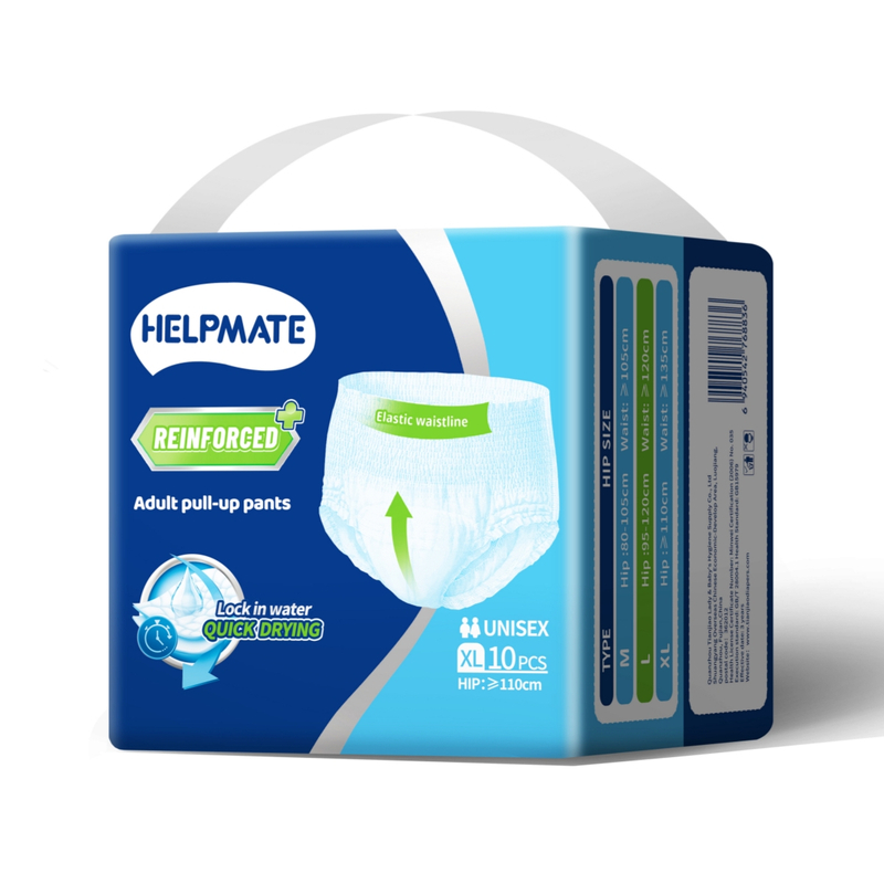As fraldas pull-up para adultos Helpmate são cuidadosamente projetadas para oferecer aos usuários idosos e adultos com incontinência uma solução digna, confortável e altamente absorvente. Com materiais macios, folha traseira respirável e proteção anti-vazamento, nossas calças para adultos suportam tanto o uso diário quanto o uso noturno. Confiável pelos cuidadores, adequado tanto para usuários ativos quanto para usuários acamados.